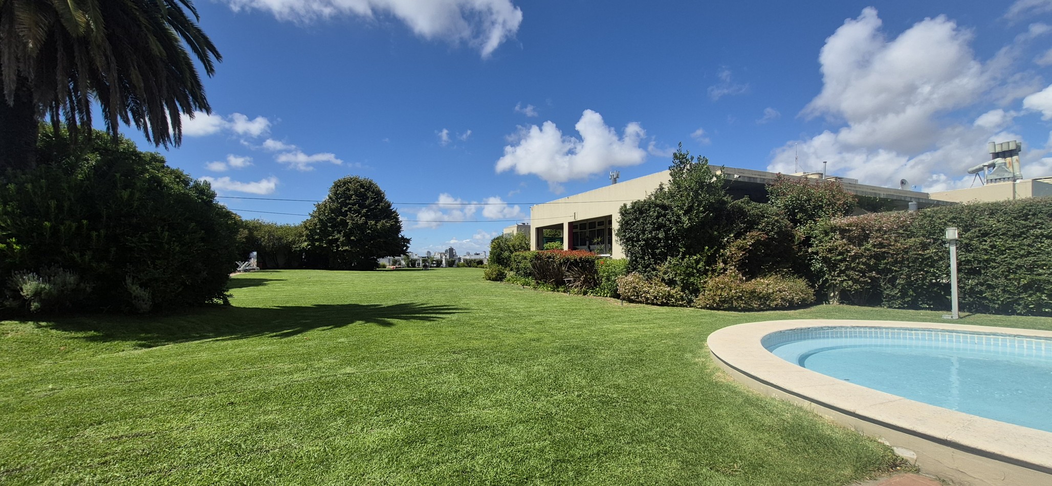 Pileta, parque de 2500m2. aprox. , SUM. para 50 personas, con mobiliario ( mesas, sillas, vajilla , equipo audio etc. ) cocina a gas con horno, heladera.