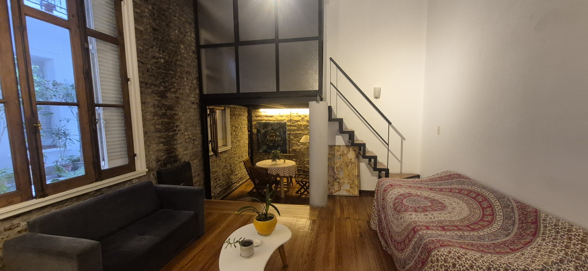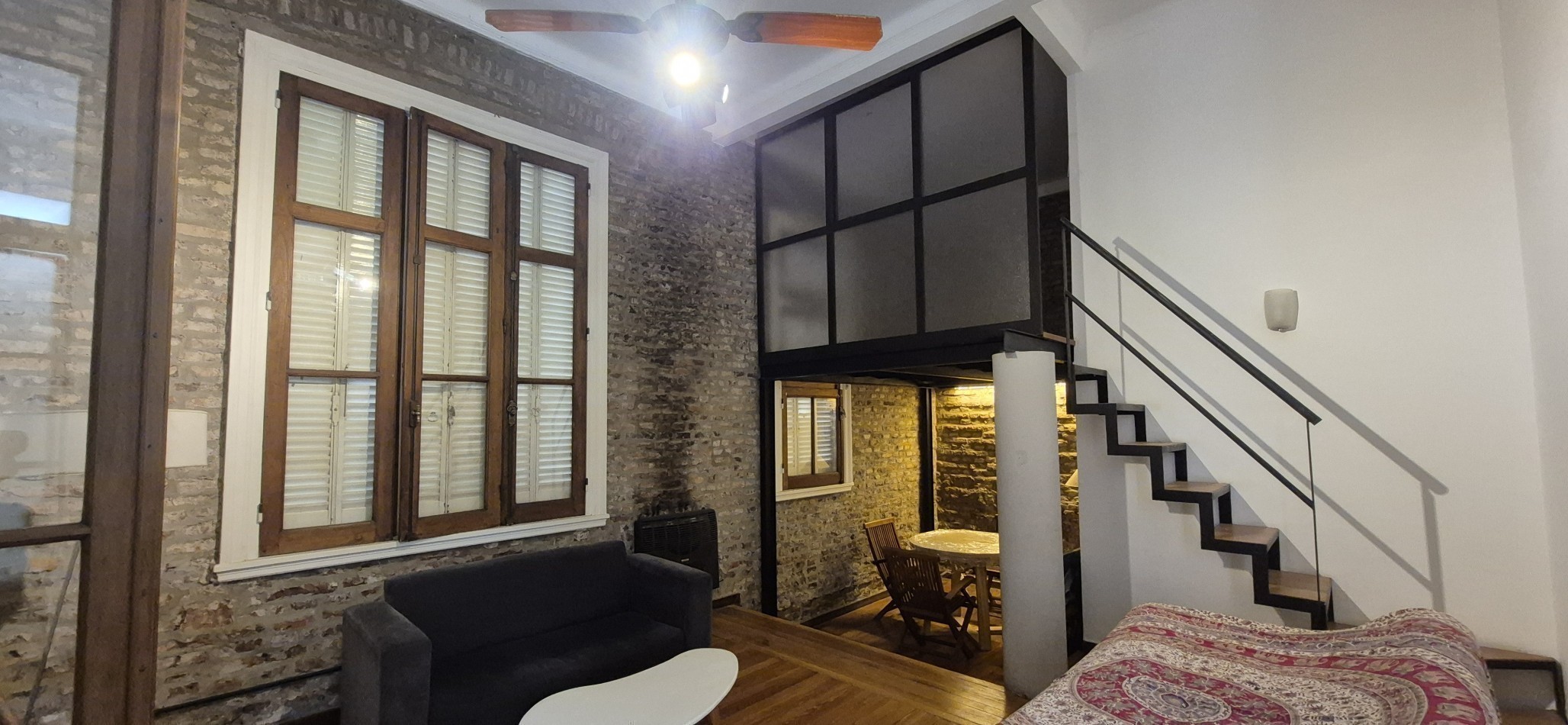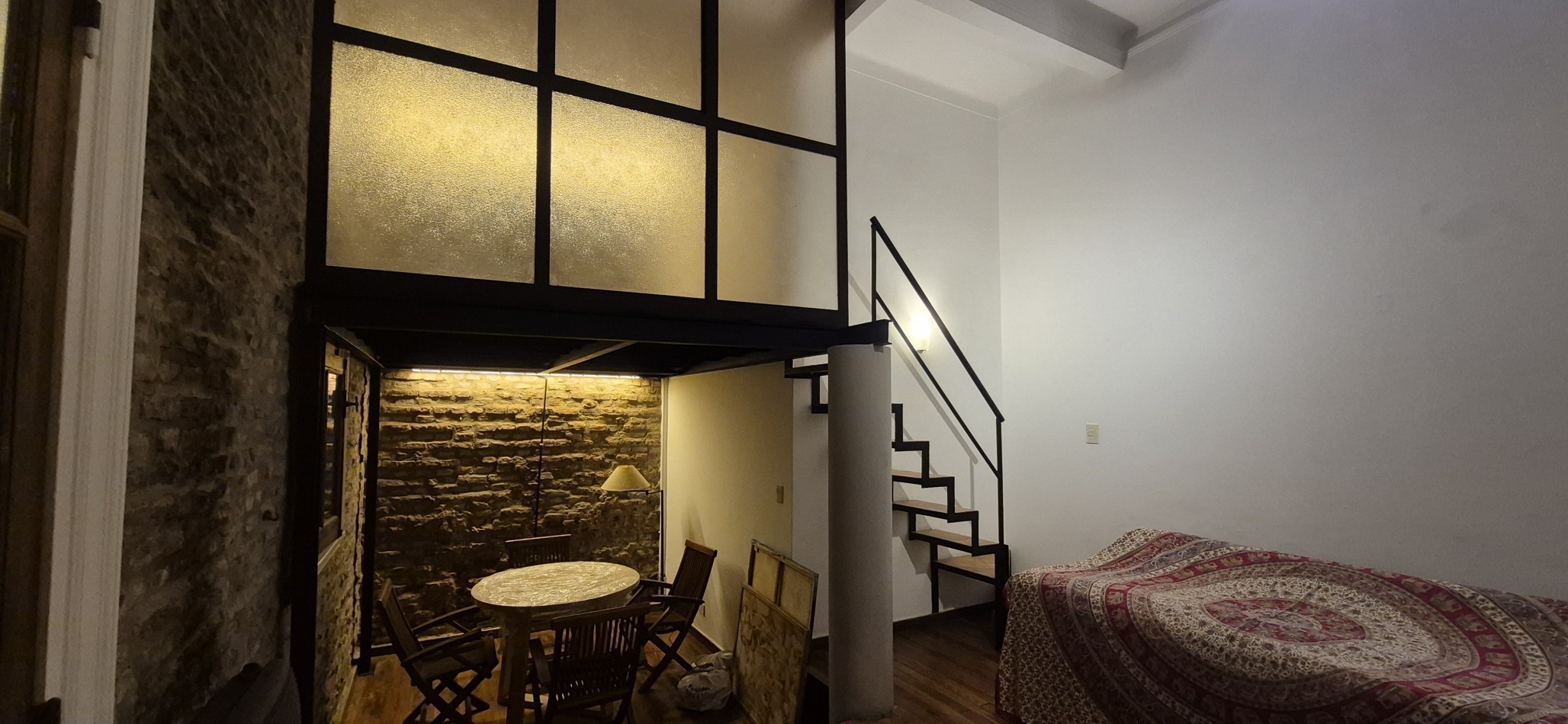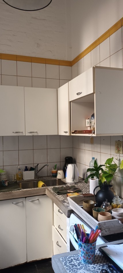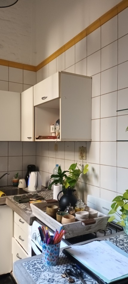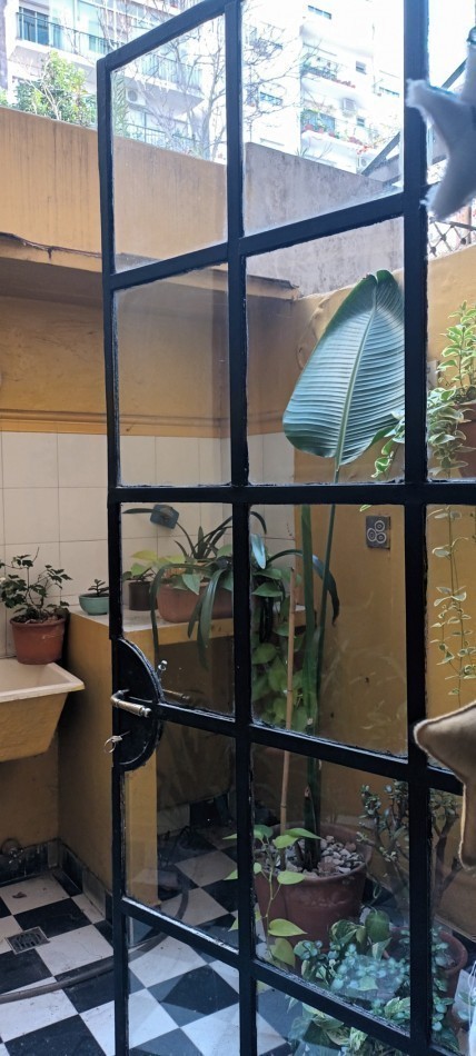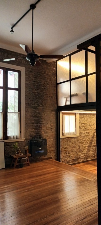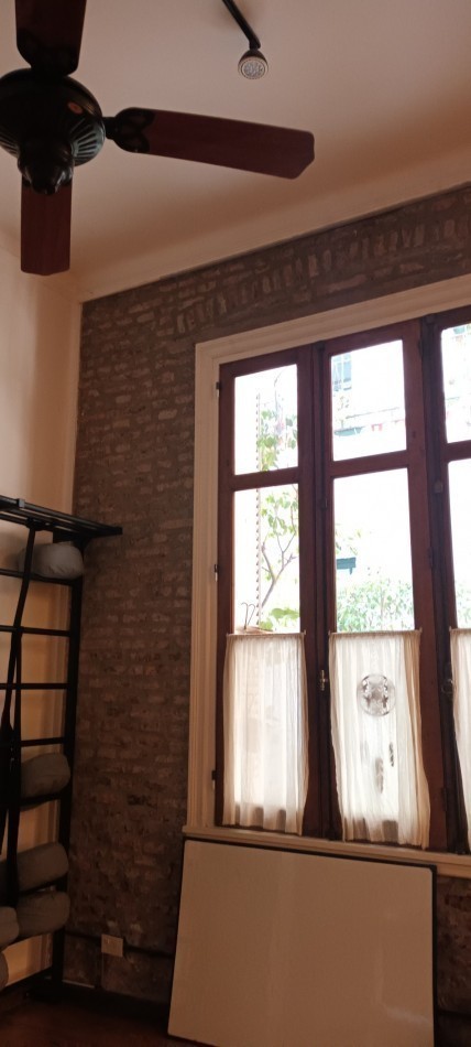 Al ingresar al departamento encontramos un Hall de acceso y a mano derecha un amplio escritorio o 4 dormitorio con ventana patio central del edificio, un amplio living comedor (con uno de los antiguos dormitorios actualmente integrado) Posee un entrepiso con un espacio para uso de taller o sala adicional. Calefactor de tiro balanceado.