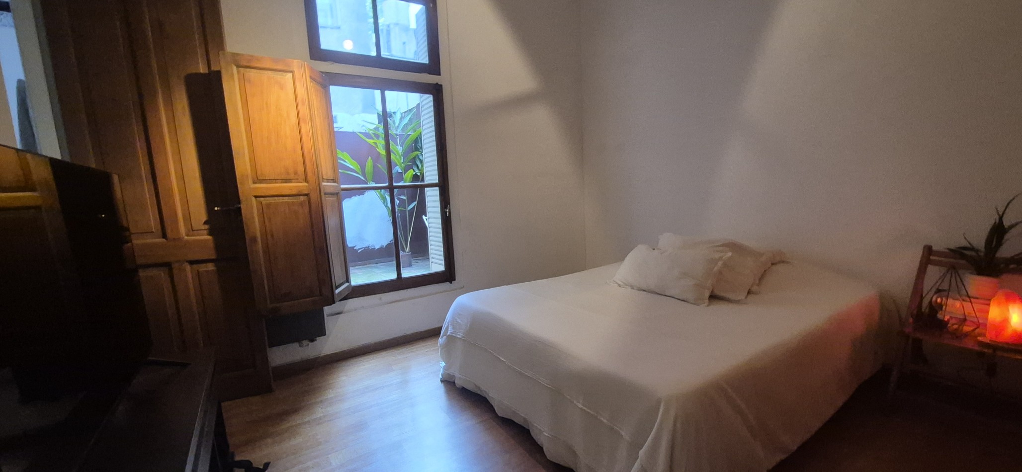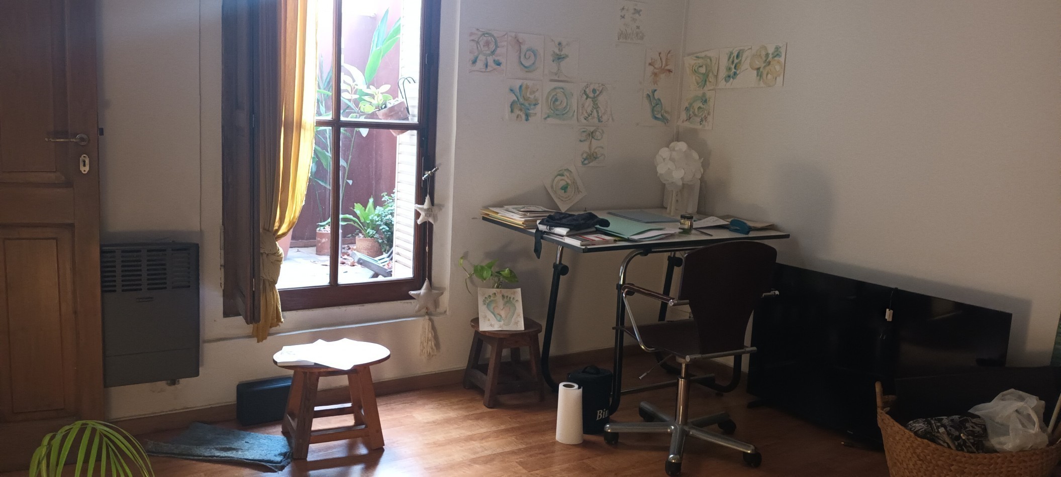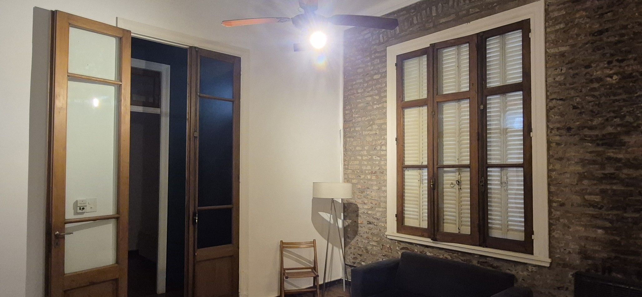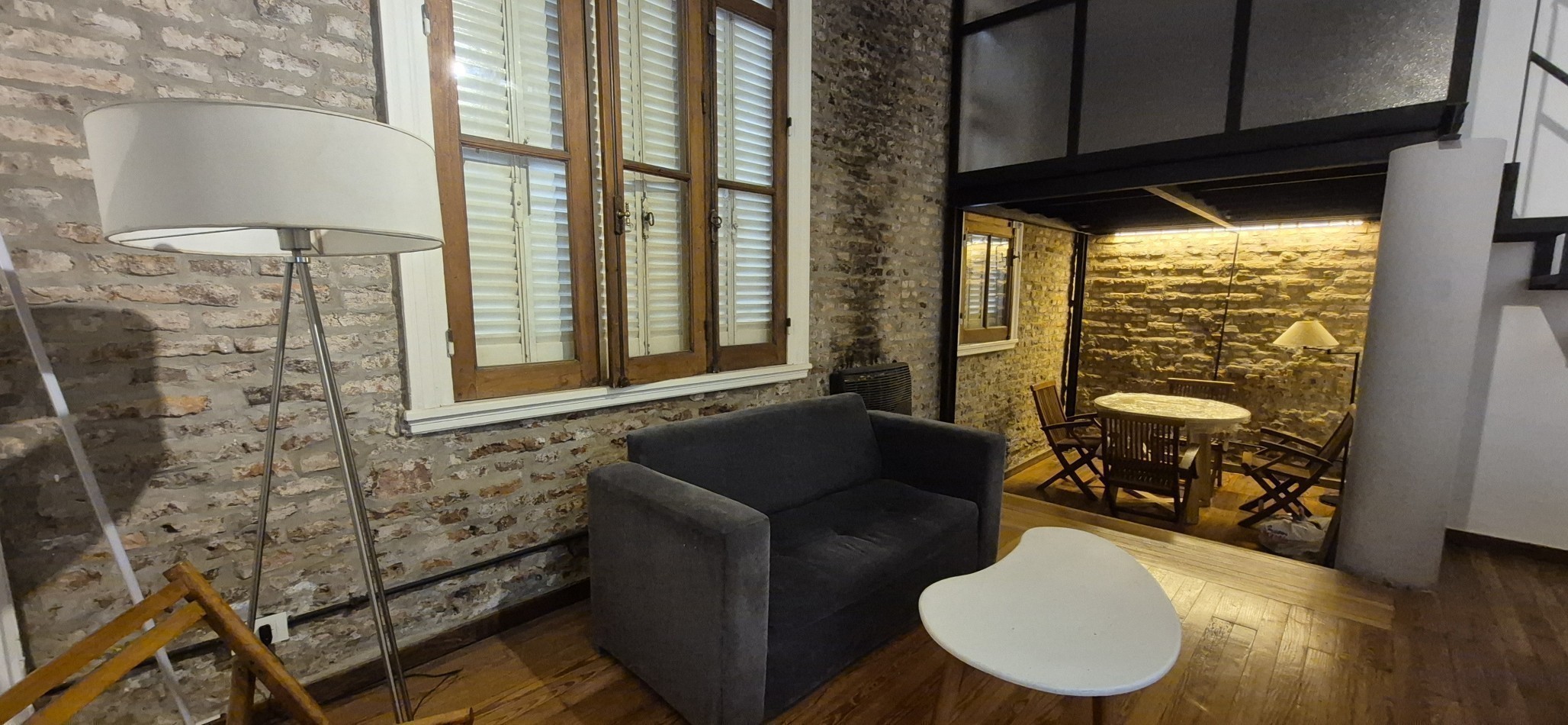 Al ingresar al departamento encontramos un Hall de acceso y a mano derecha un amplio escritorio o 4 dormitorio con ventana patio central del edificio, un amplio living comedor (con uno de los antiguos dormitorios actualmente integrado) Posee un entrepiso con un espacio para uso de taller o sala adicional. Calefactor de tiro balanceado.