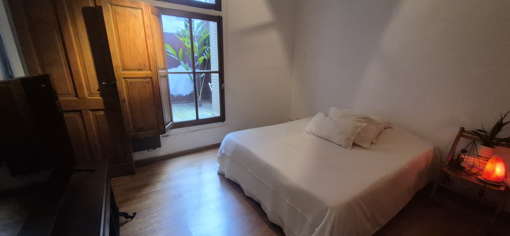 La cocina cuenta con salida a un patio de uso exclusivo de la unidad , con lavadero exterior y espacio de guardado para herramientas. Cuenta con un toilette , un pasillo que conecta con otro dormitorio y el dormitorio principal en suite con ventana un segundo patio de uso exclusivo.