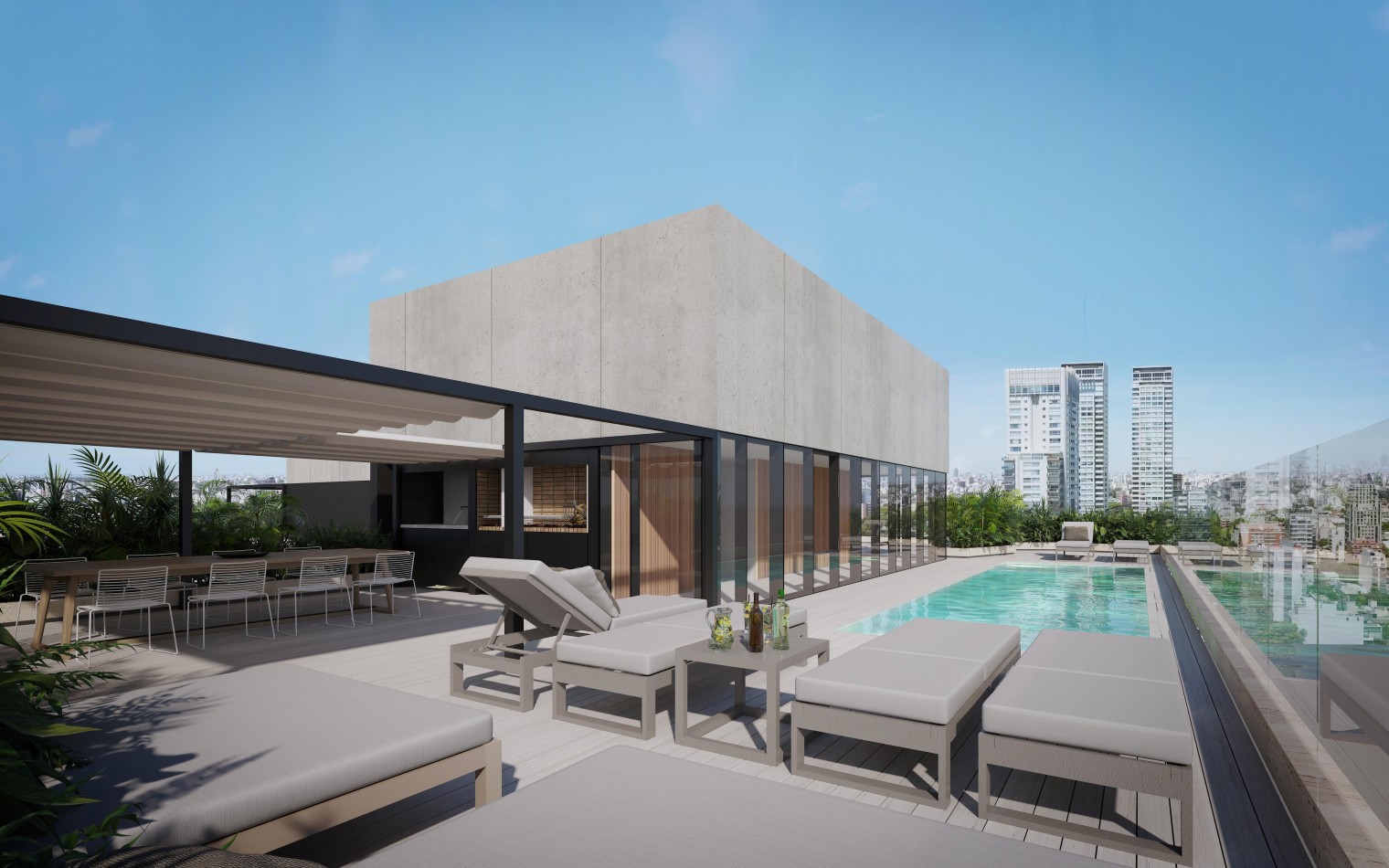 Las medidas, superficies y proporciones mencionadas en los planos del presente incluyen los metros totales con relación a linderos, espesores de muros de fachada frente, contrafrente y laterales, muros internos de cada unidad y estructuras. Parte de esos metros serán descontados en los planos aprobados por la autoridad competente, siendo los valores finales los que surjan de estos últimos. Los m2 de los amenities no figurarán como propios de la unidad en la escritura traslativa de dominio por tratarse de metros comunes.